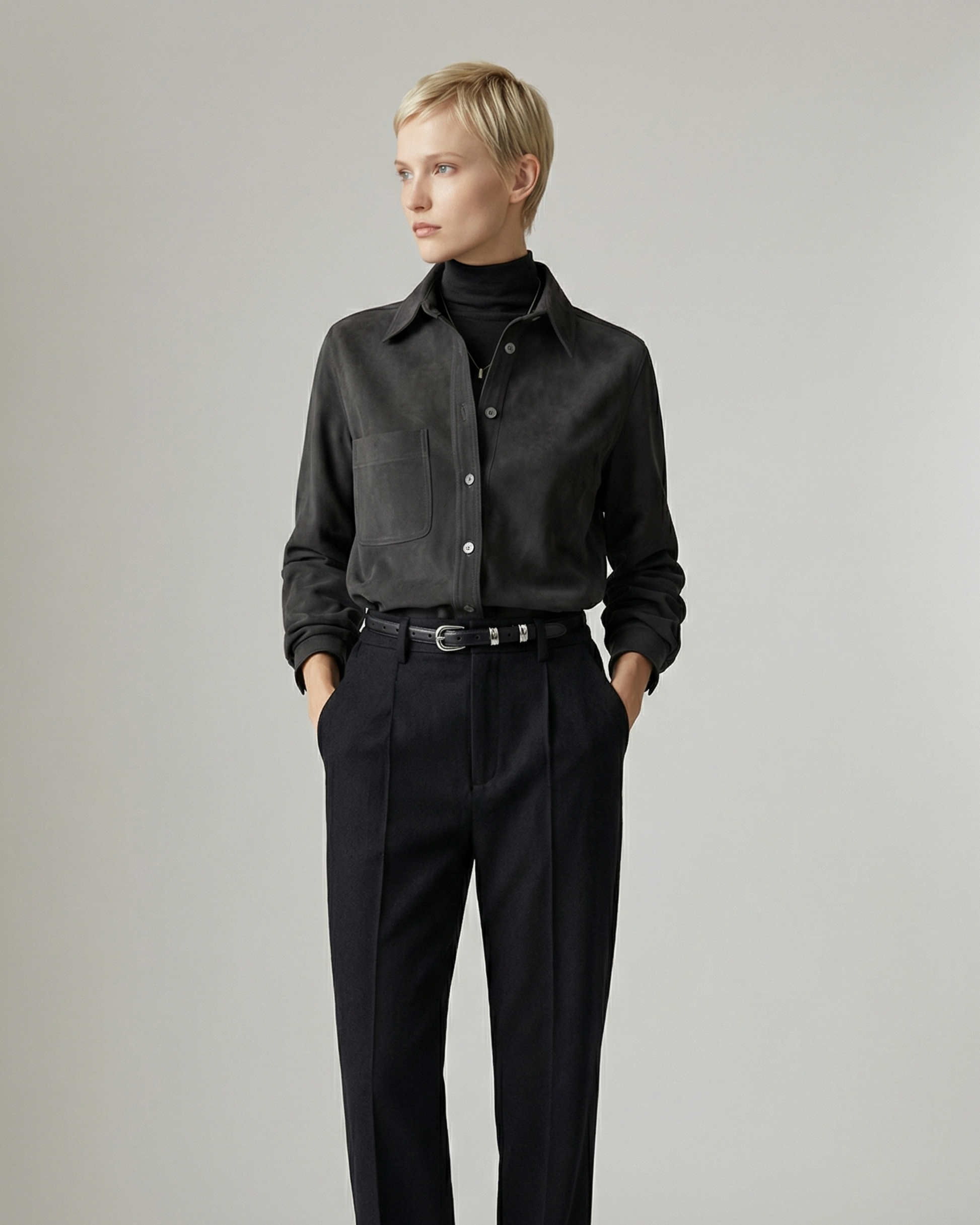表面はきれいめに見える織り素材、肌に触れる内側はやわらかな起毛仕上げのシャツです。
