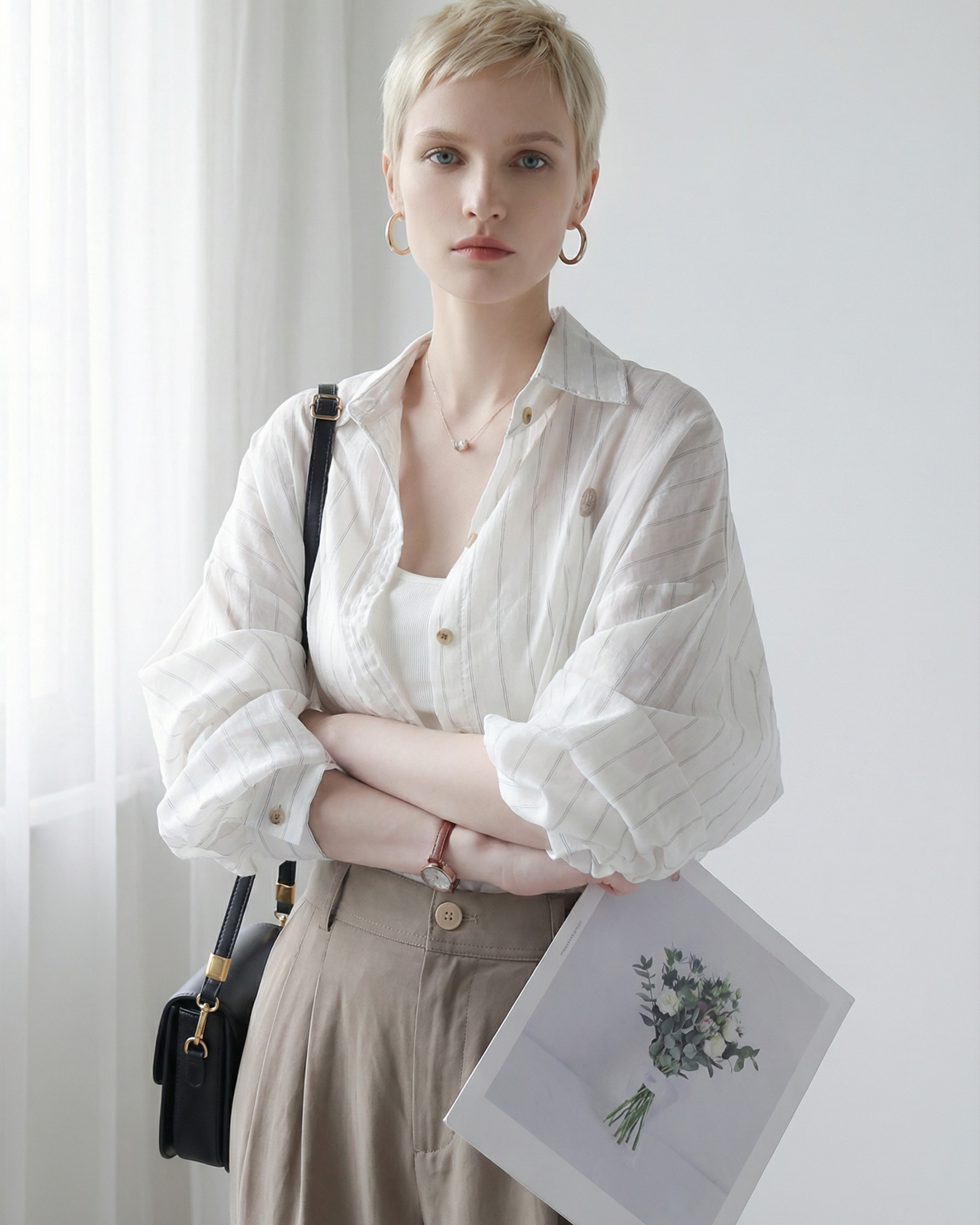 ※本商品は Airy Stripe Shirt - SH043 の同型モデルです。デザイン・素材・シルエットは共通で、カラーのみ異なります。