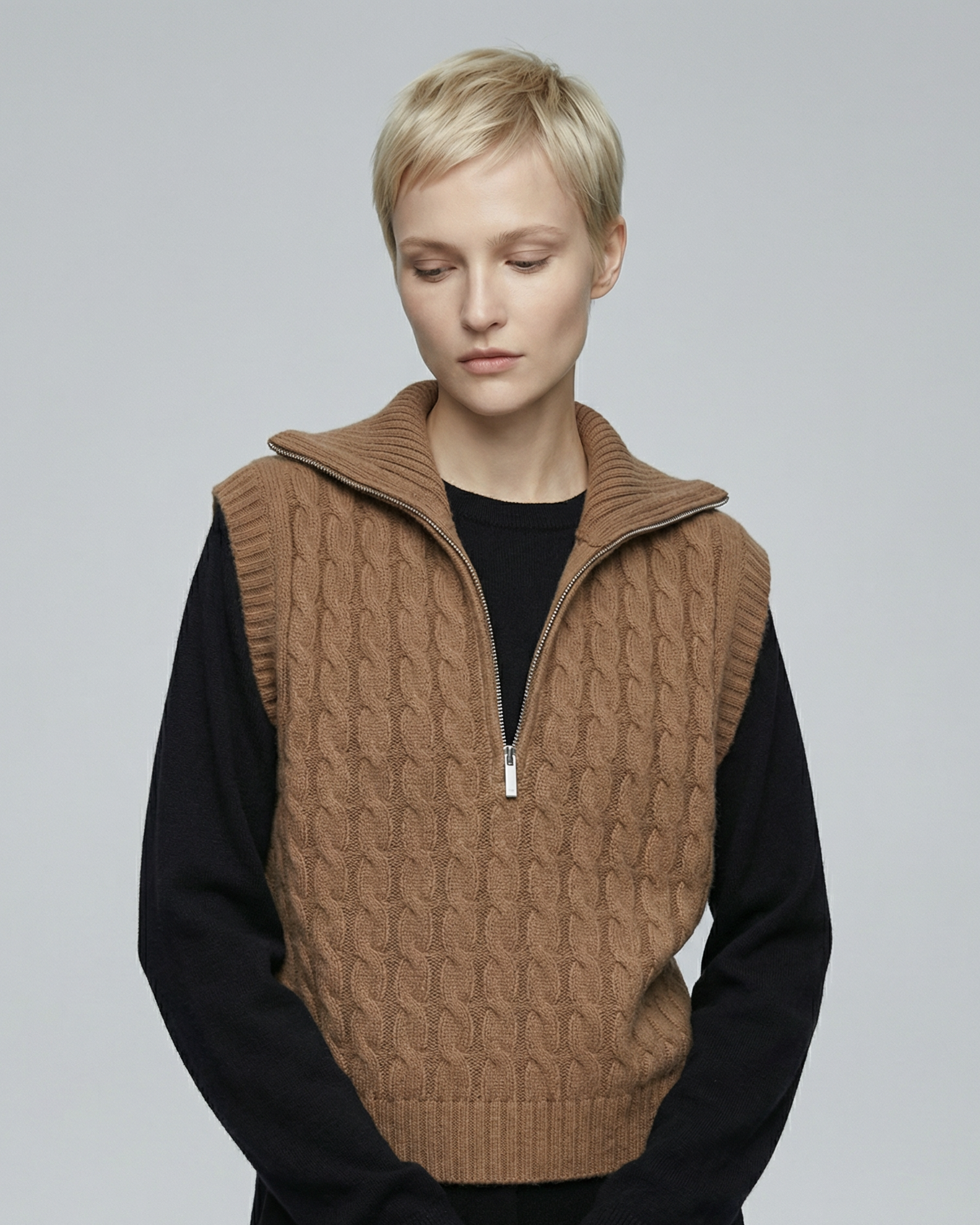 Zip-Neck Wool Vest - KN039