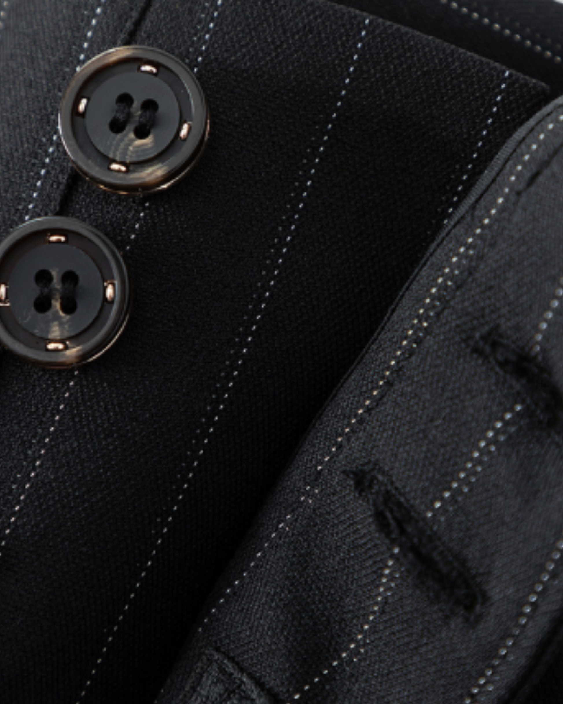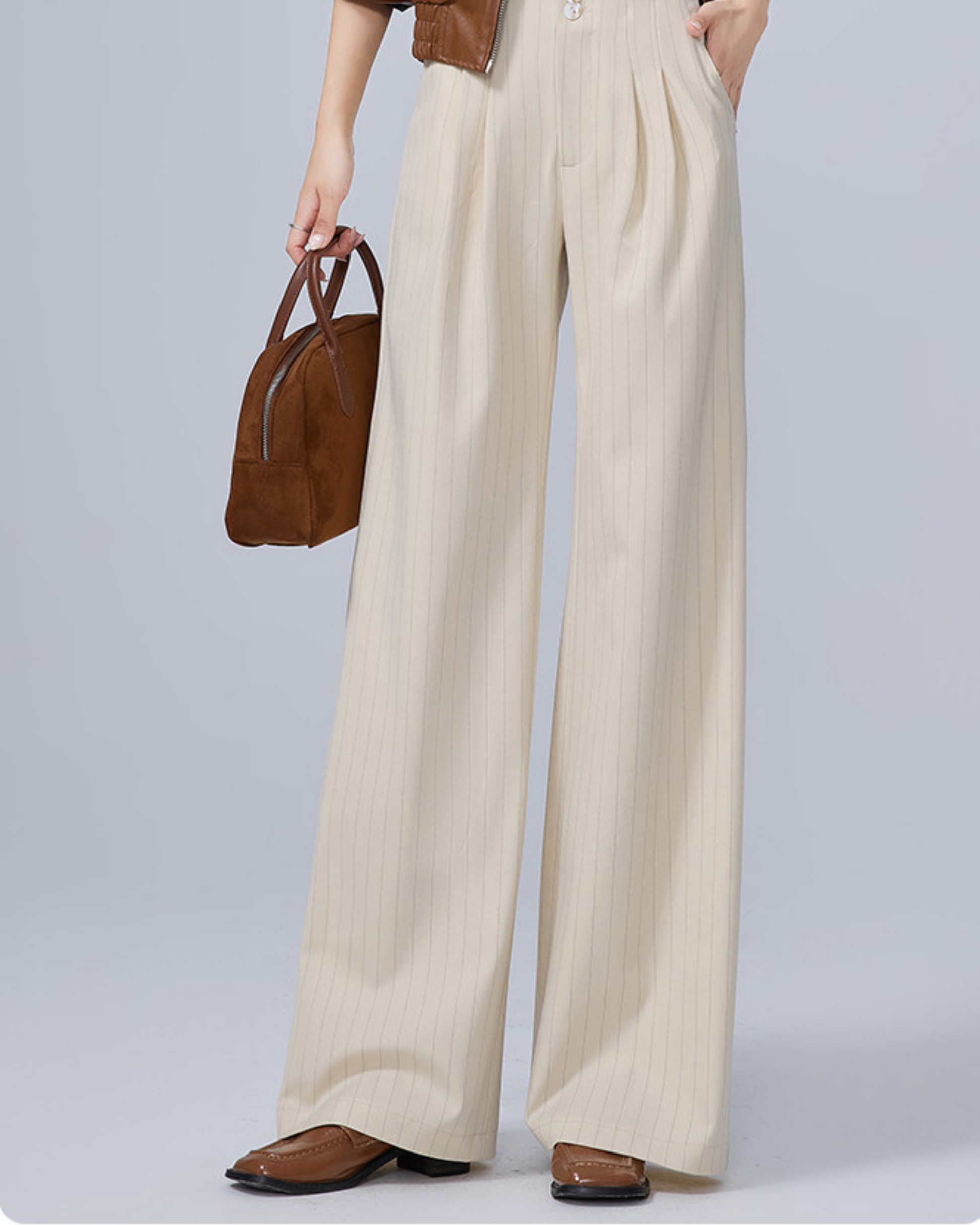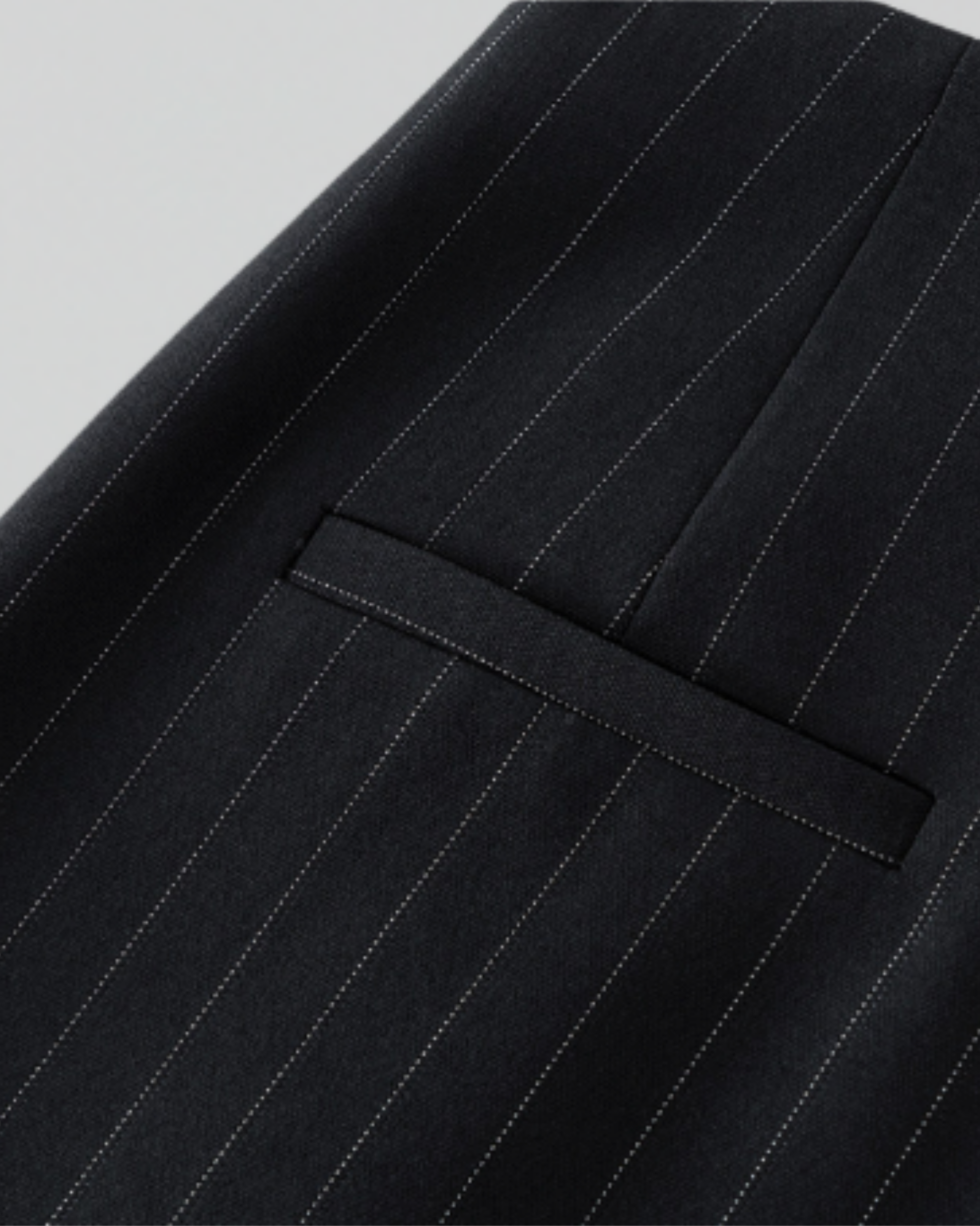 縦ラインを強調するピンストライプが、脚をまっすぐ長く見せてくれます。オンオフ問わず使える、大人のためのベーシックなストライプパンツです。