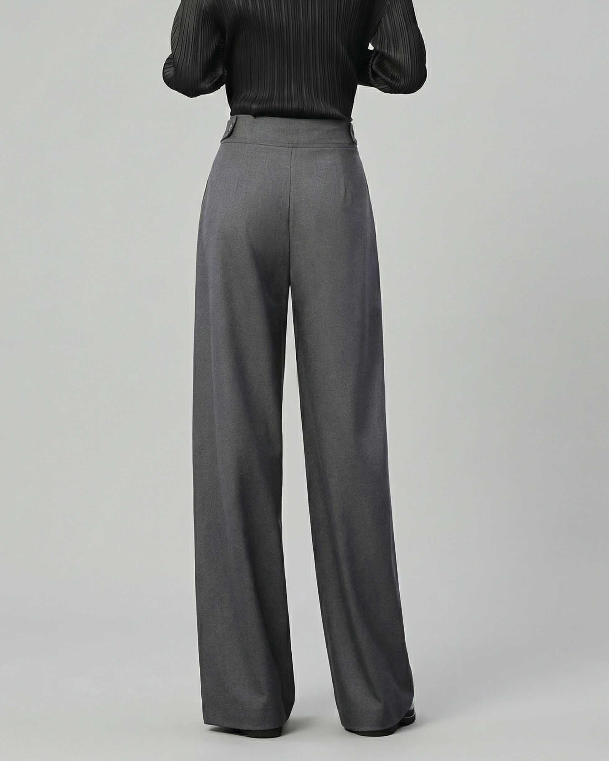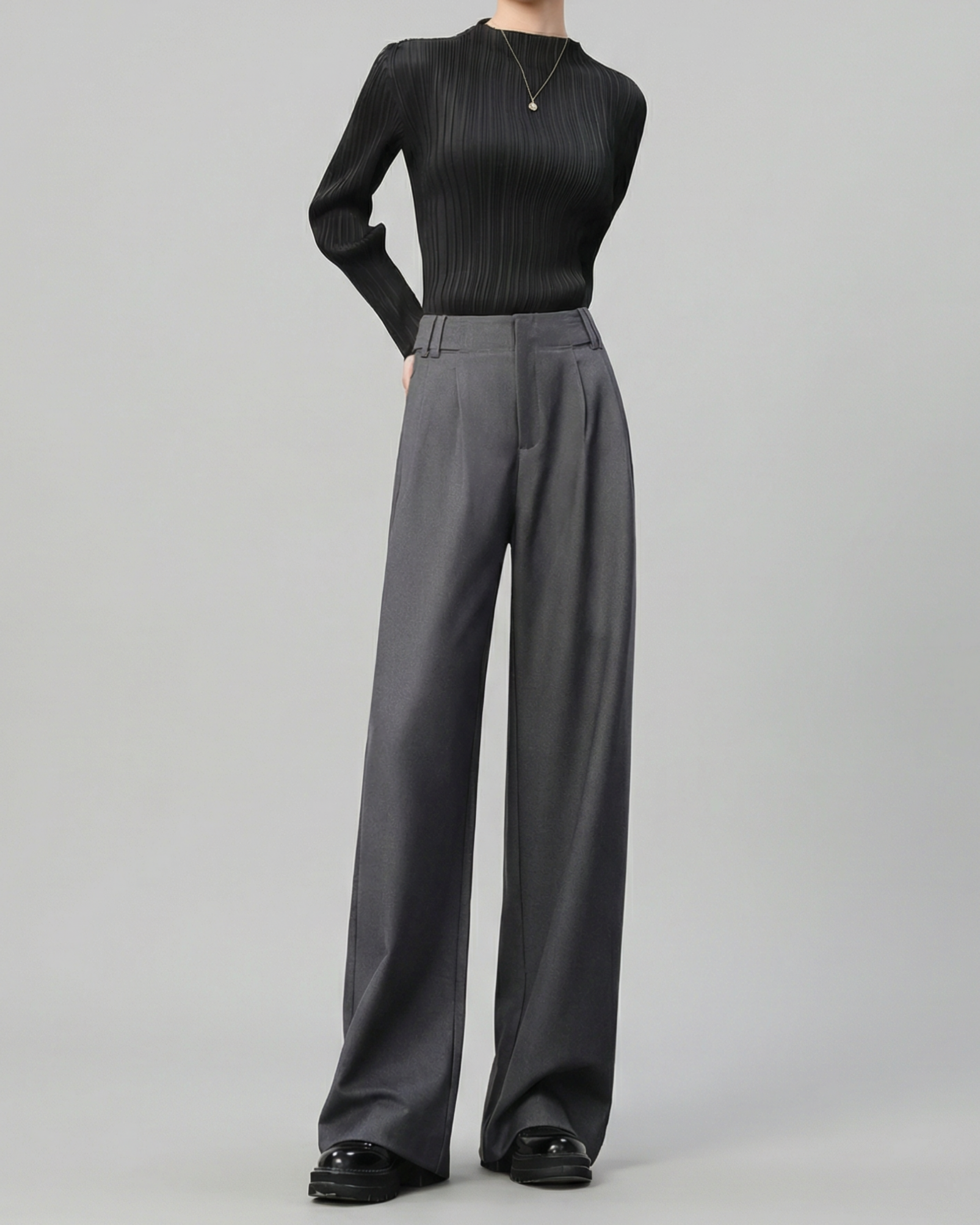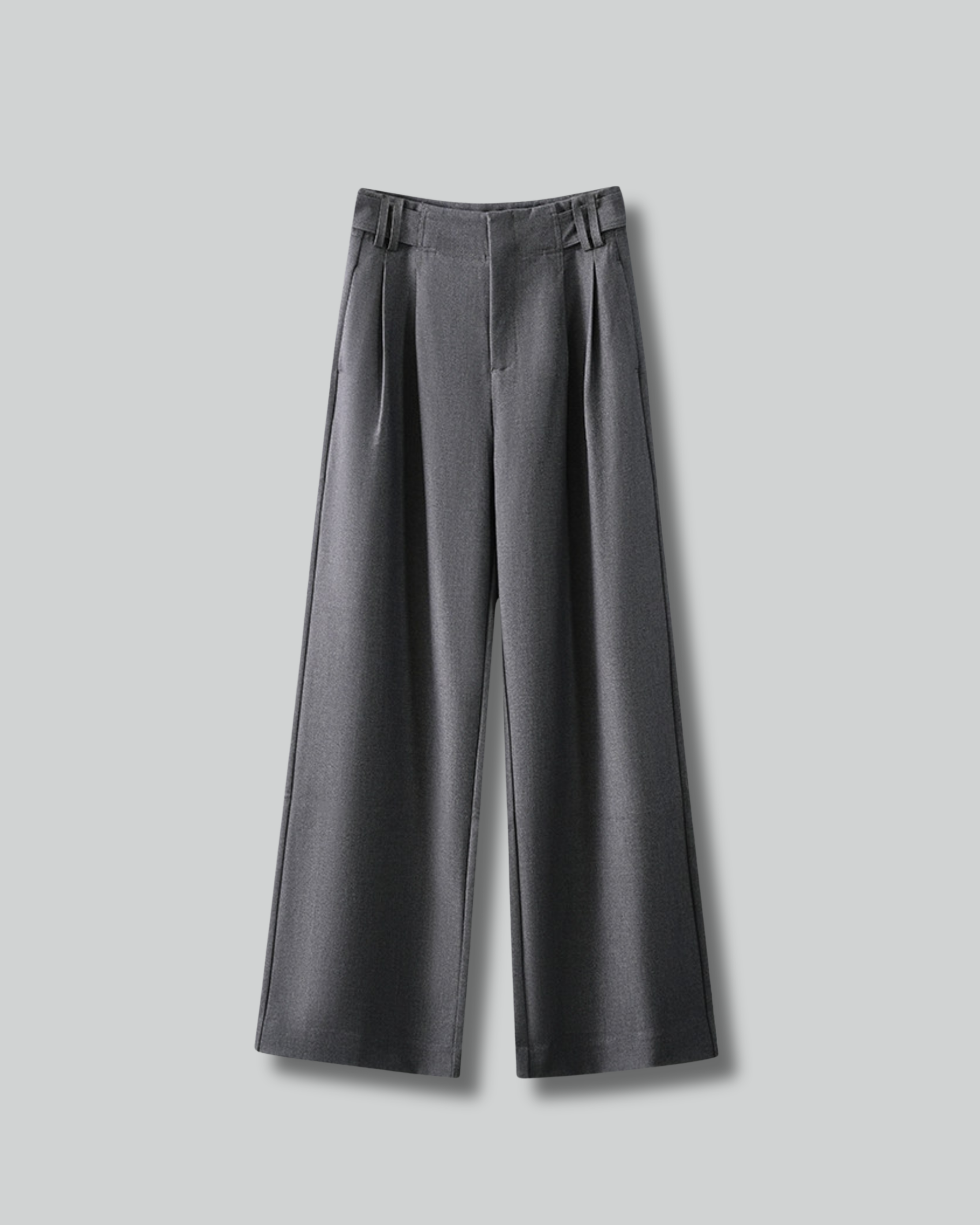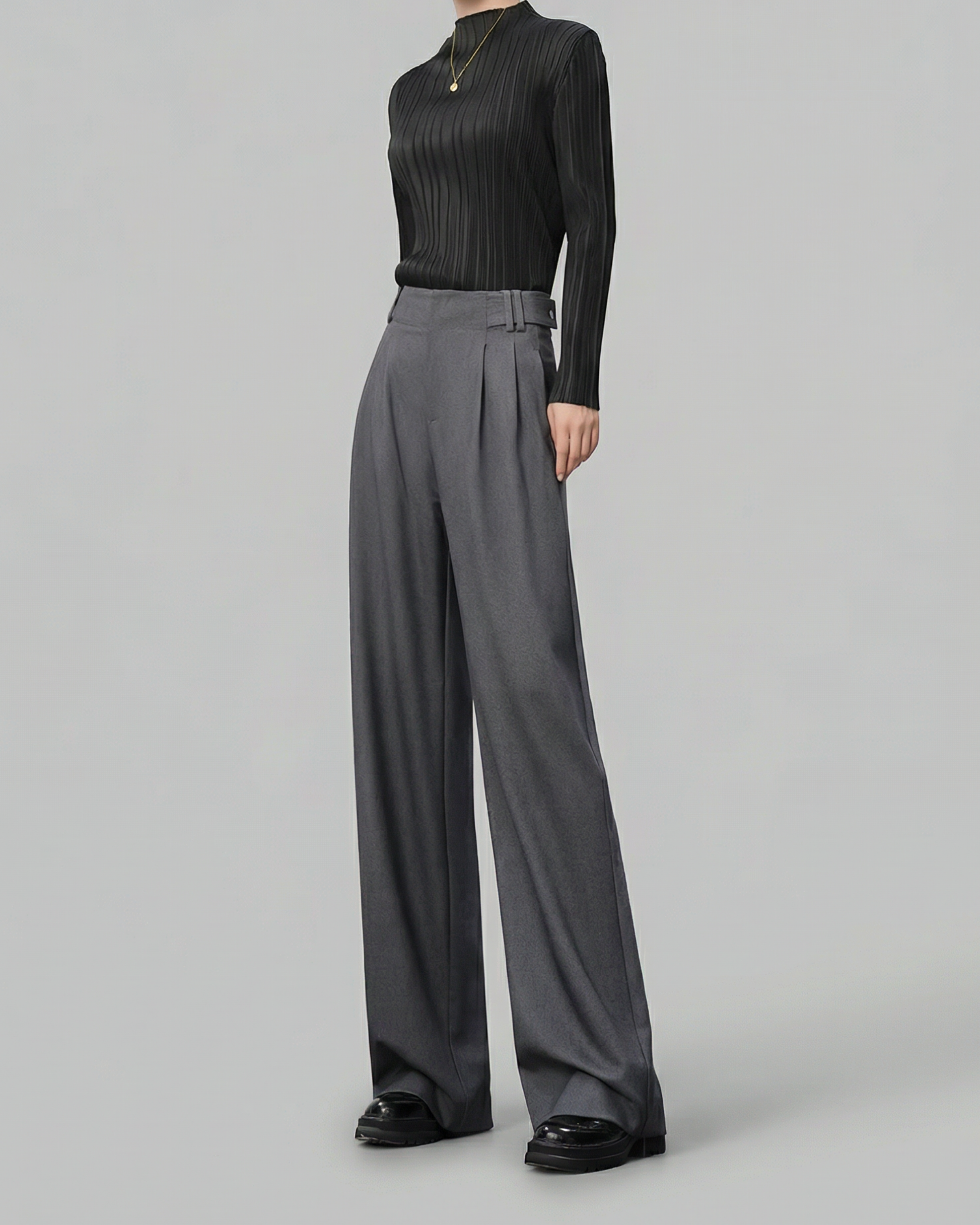 縦ラインを強調する落ち感のあるワイドシルエットが脚をまっすぐ長く見せてくれるハイウェストパンツです。厚すぎない生地感なので秋冬はもちろん春先まで長く着用できます。