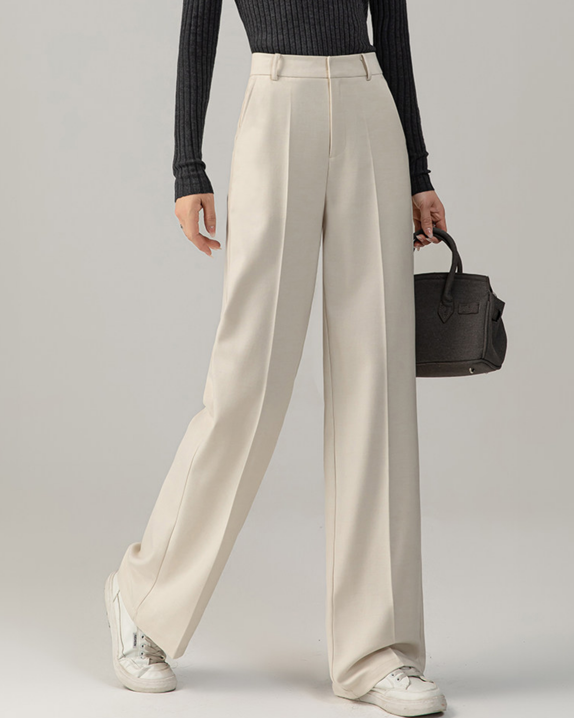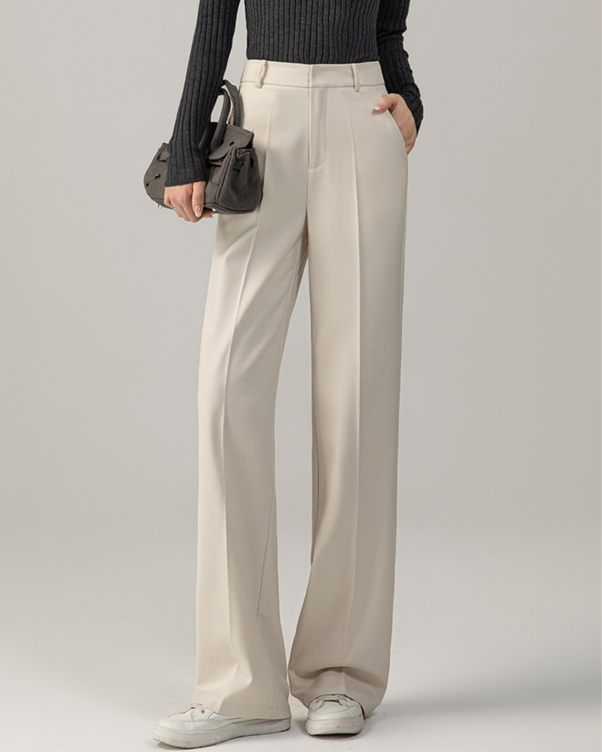 軽やかなアイボリーの色合いと、くっきり浮かぶ縦のセンターラインが脚をまっすぐ長く見せてくれます。