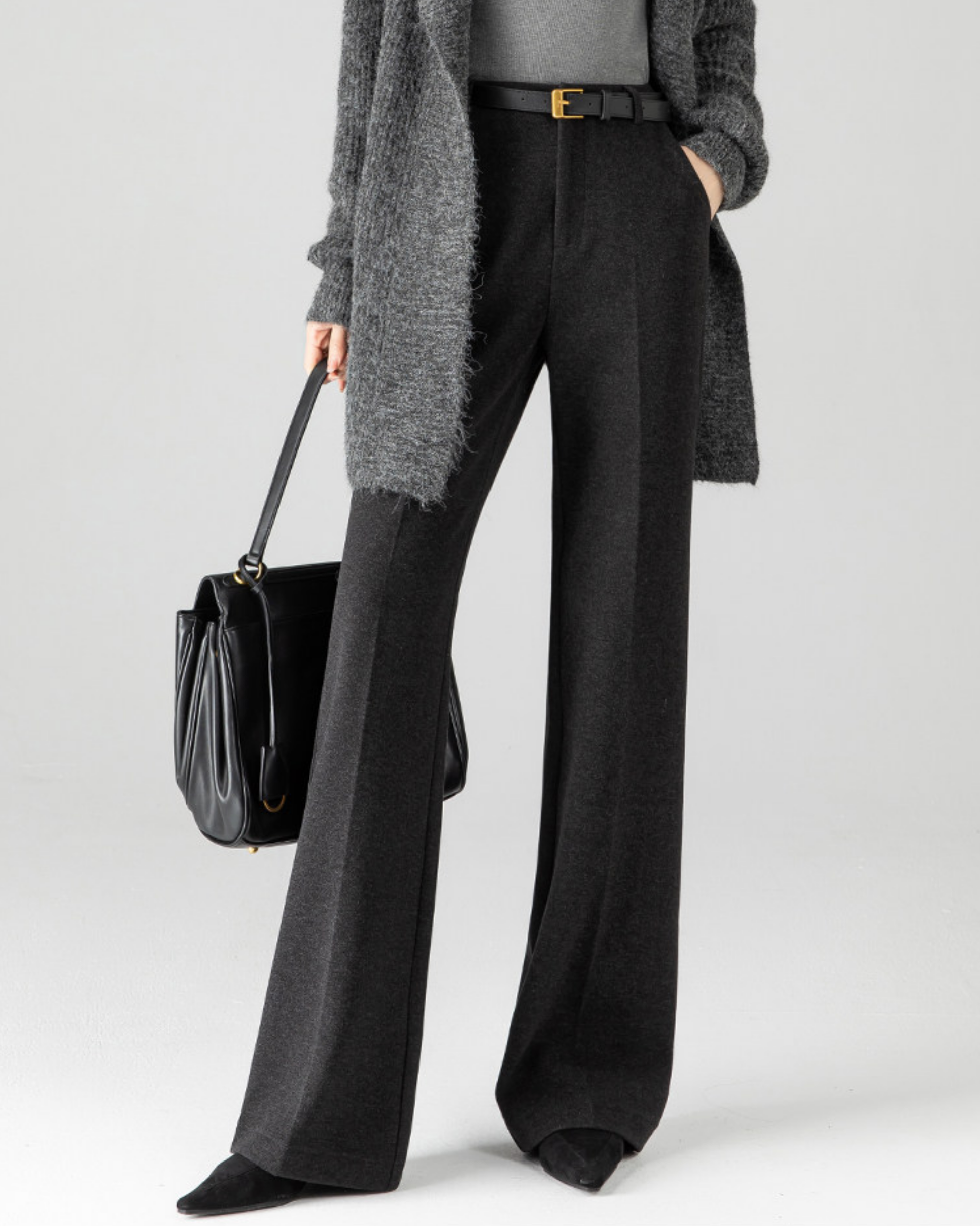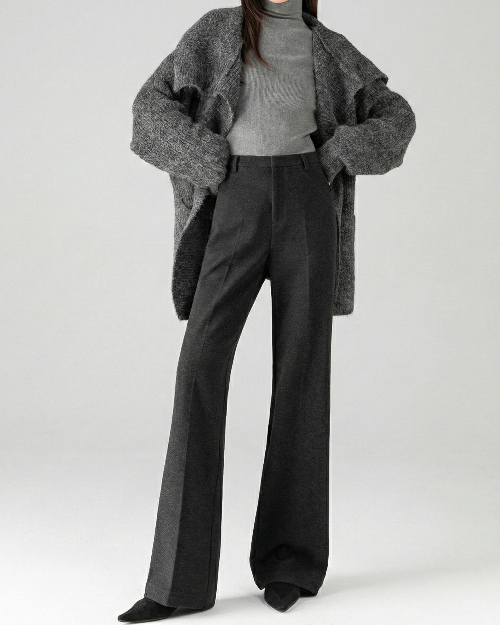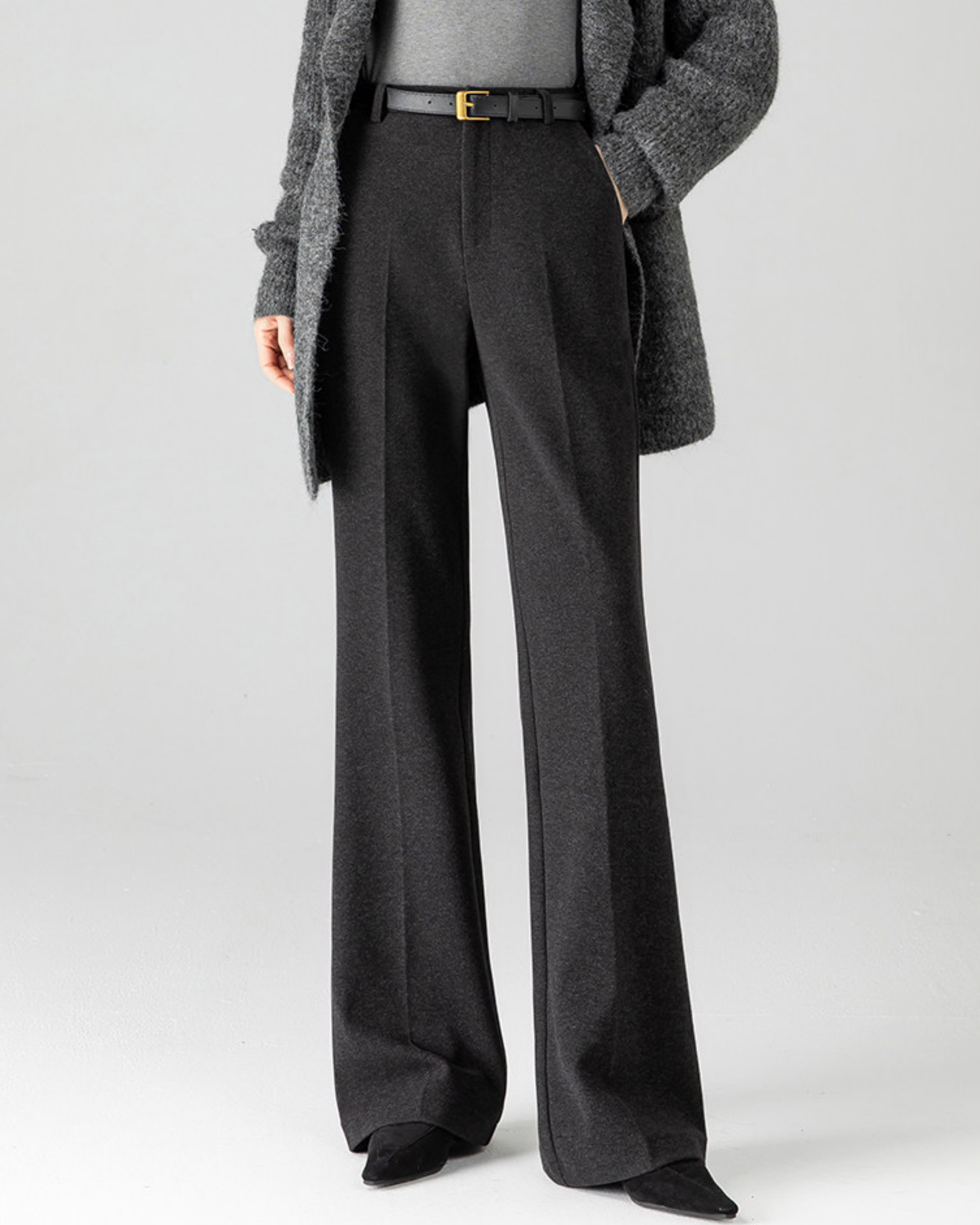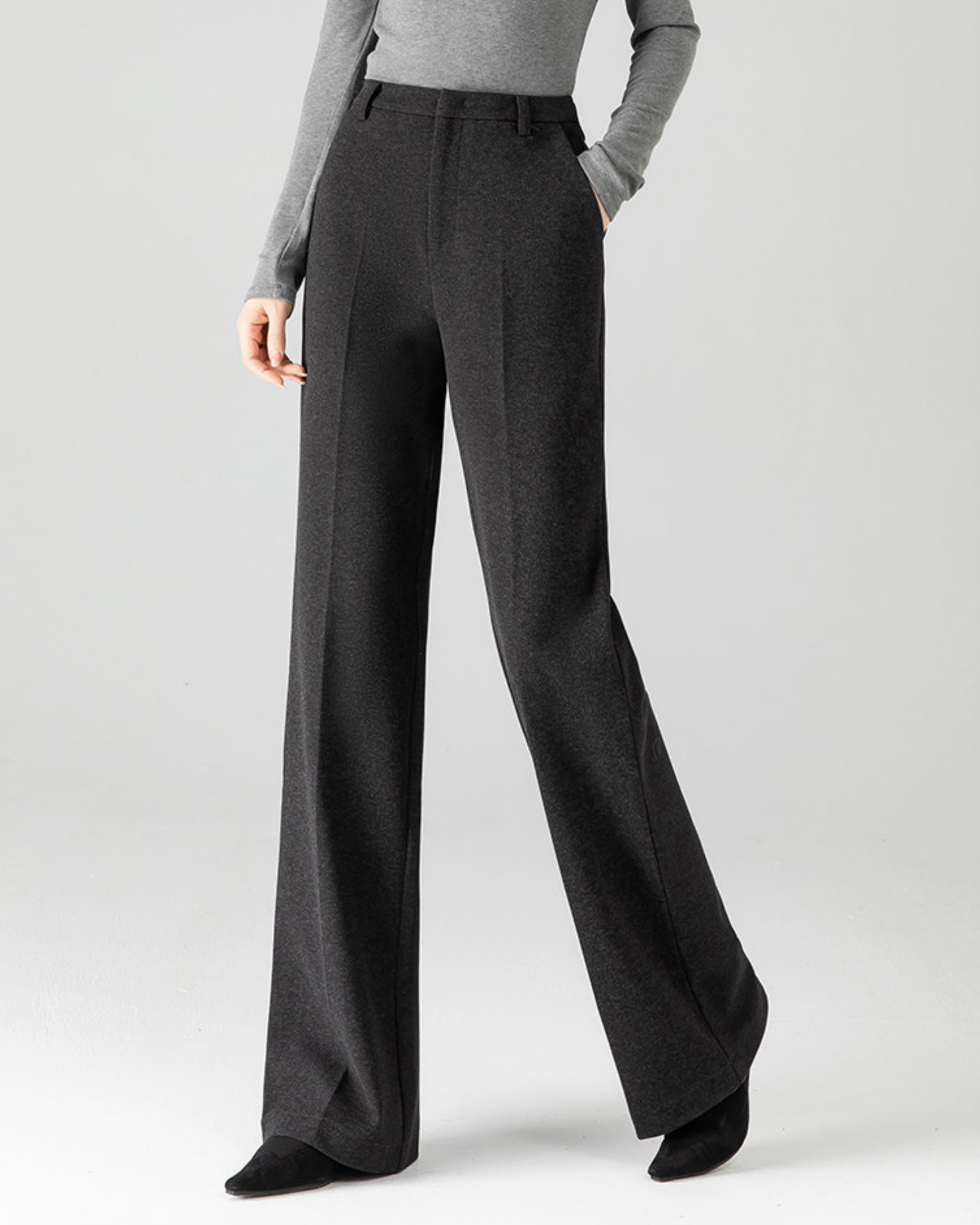 腰位置を高く設定し、脚をまっすぐ長く見せてくれるハイウェストパンツです。